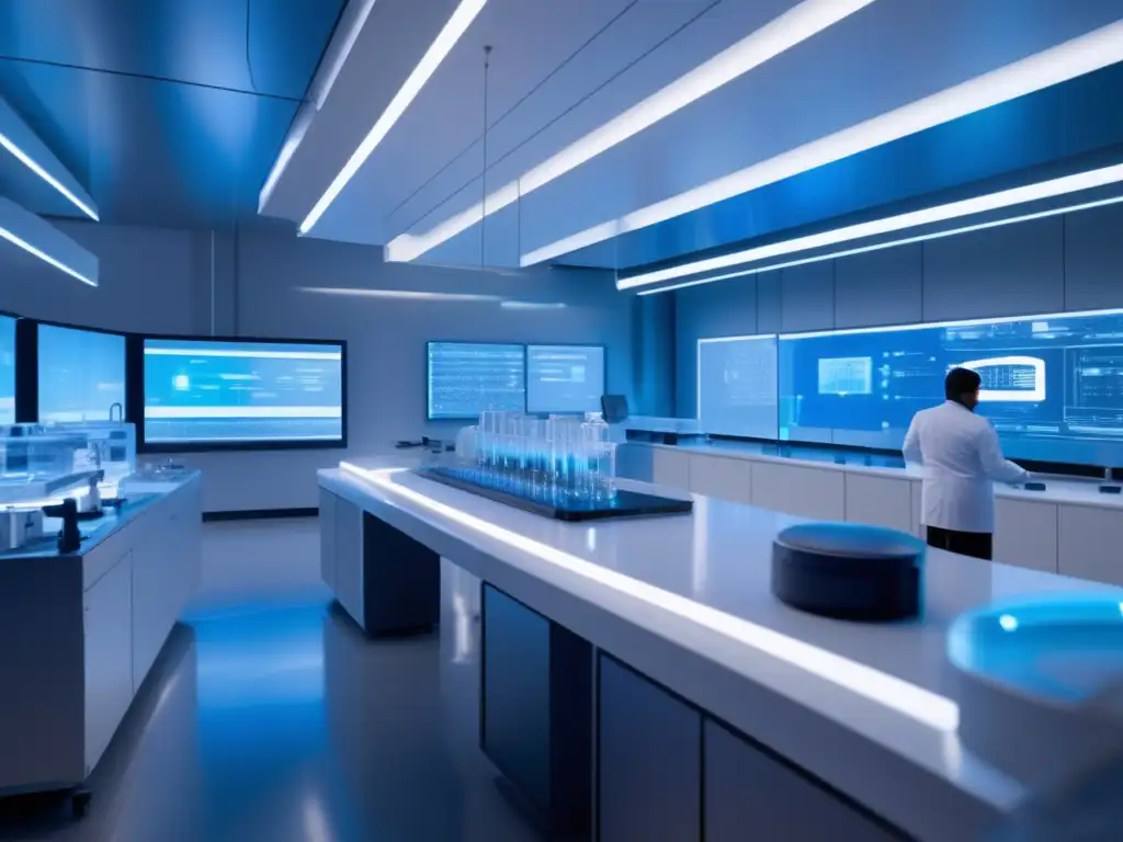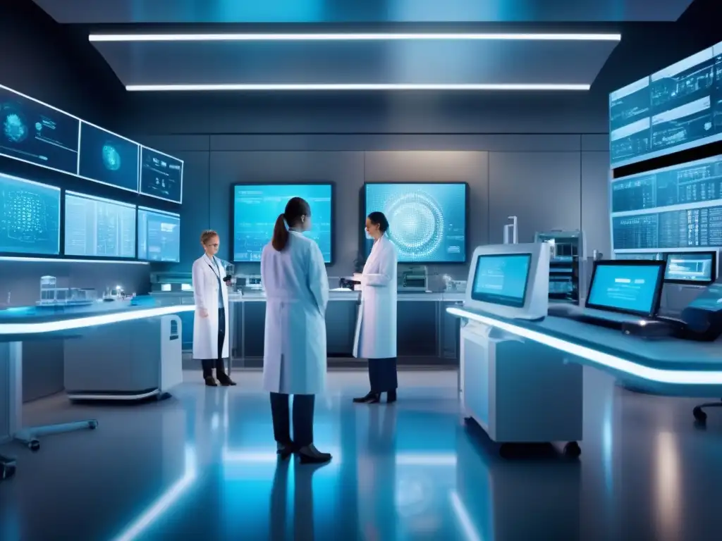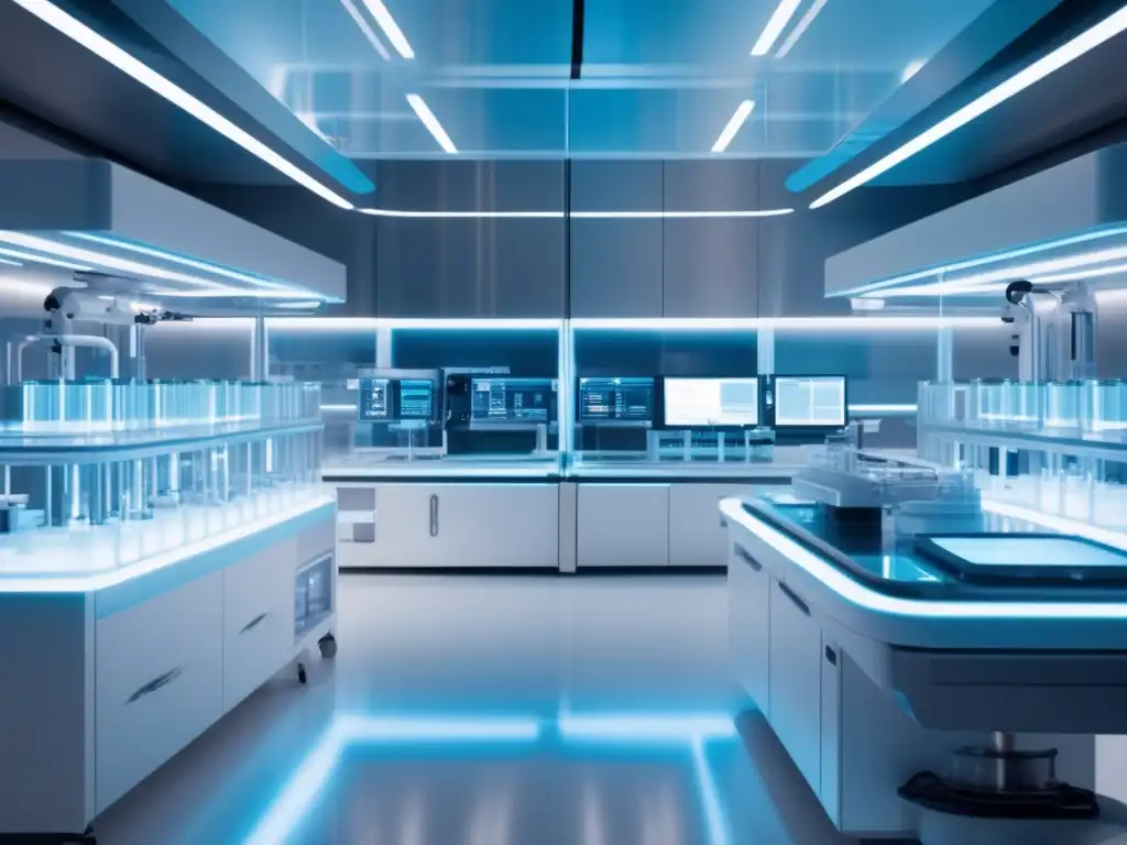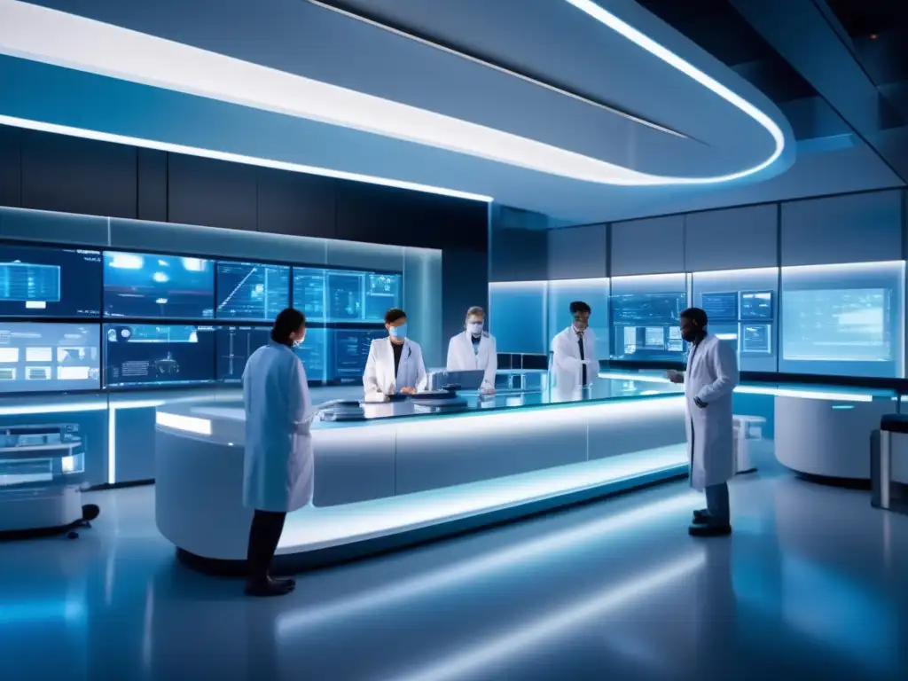 Tecnología de vanguardia para Terapias células CART cáncer longevidad."" title="Avanzado laboratorio futurista: científicos manipulan líquido azul brillante entre hologramas y tecnología de vanguardia">Posibles desarrollos futuros